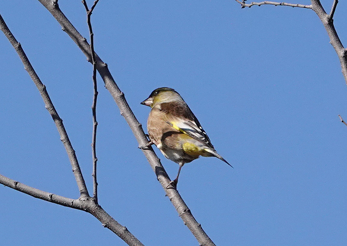 先日、いきなり飛ばれてピンボケもいいところの飛翔で黄色の部分が割と大きいのに気づいたカワラヒワ、今回はある程度は心の準備をして飛び立ちを狙った。ピントは相変わらず甘いもののなんとか撮れてはいる。やはり黄色の範囲がかなり大きいのがよくわかる。