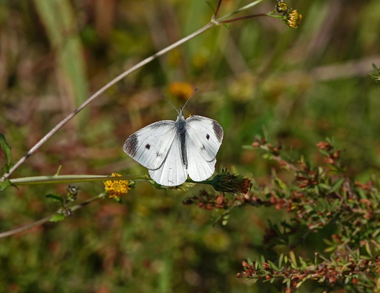 ↓ モンシロチョウもたくましい。そろそろ花からヒッツキムシの種に変わるコセンダンに飛来