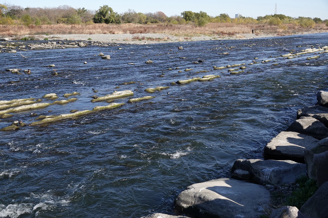 ↓ セキレイたちの生活の舞台となっている宿河原堰