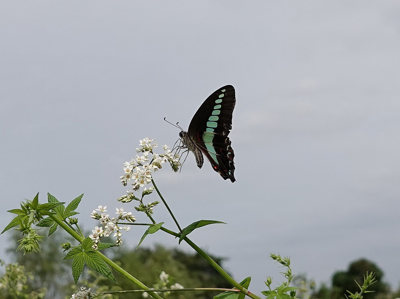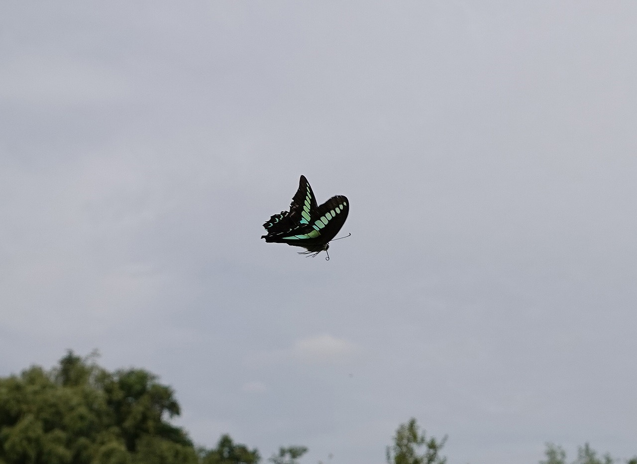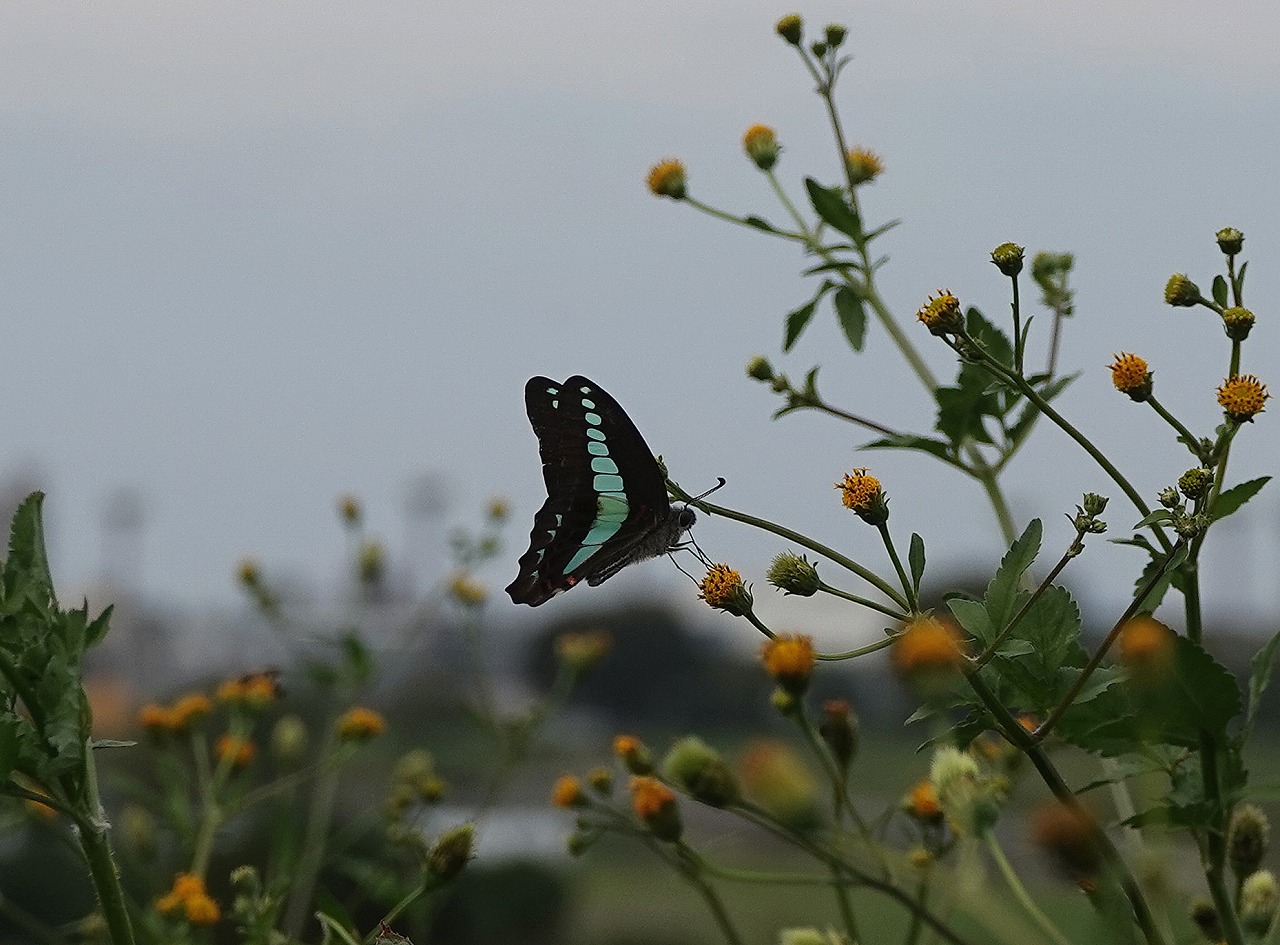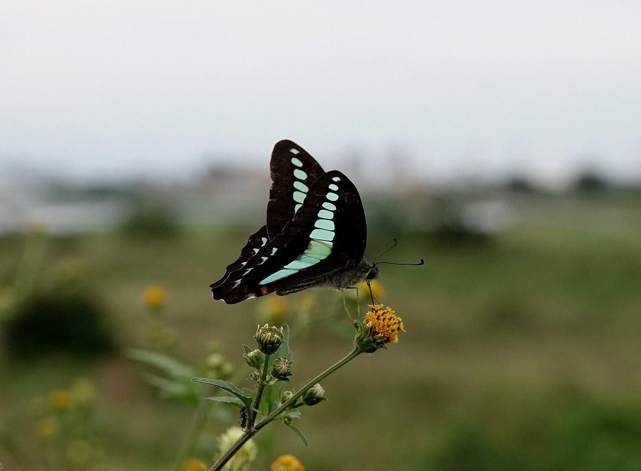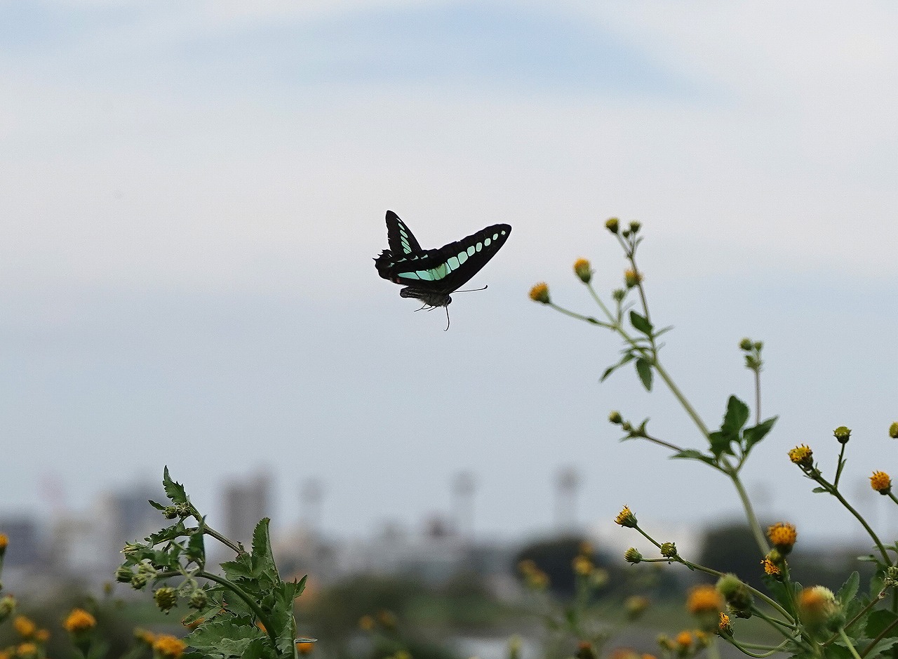 最近生田緑地のアオスジアゲハを上げましたが、今回は多摩川土手で広々した背景でのアオスジです。