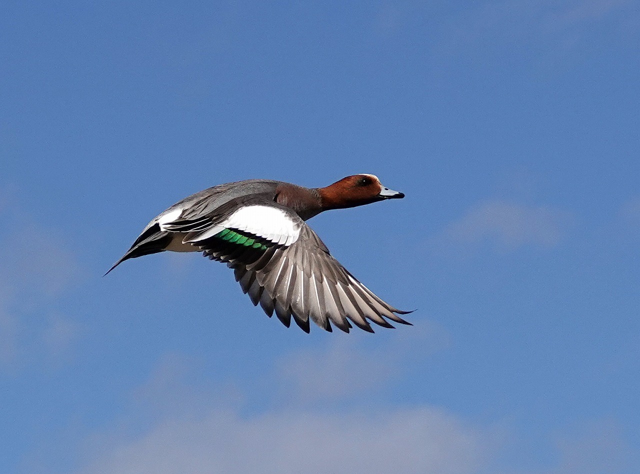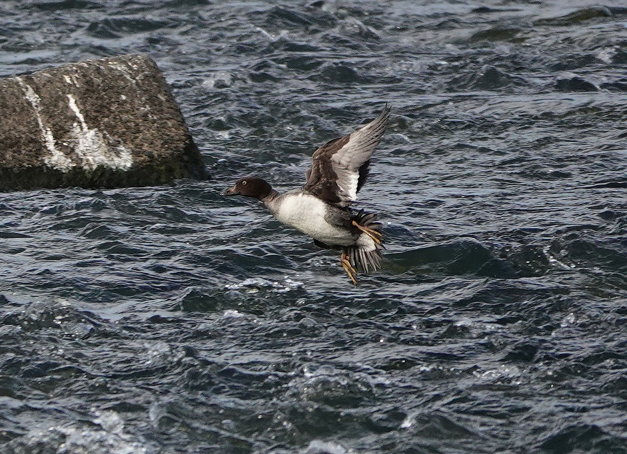 今年初見のカモ。オスの成鳥は頭部が緑で頬が白く美しいが、これはまだ幼鳥なのでオスだかメスだかよくわからない。