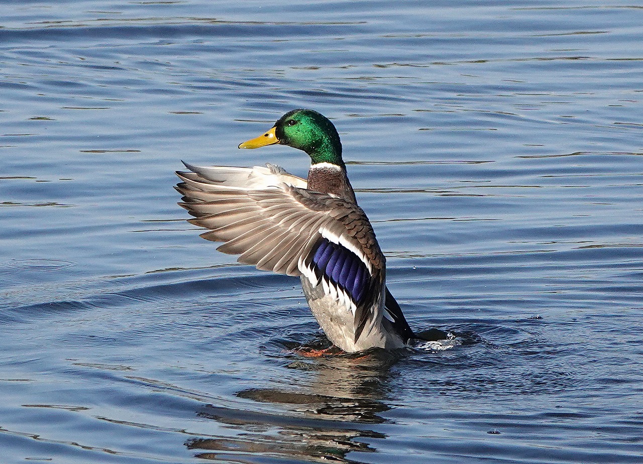 着水準備態勢。こちらも普通に見られるカモ。翼鏡がくすんだ緑色であるのが分かる。