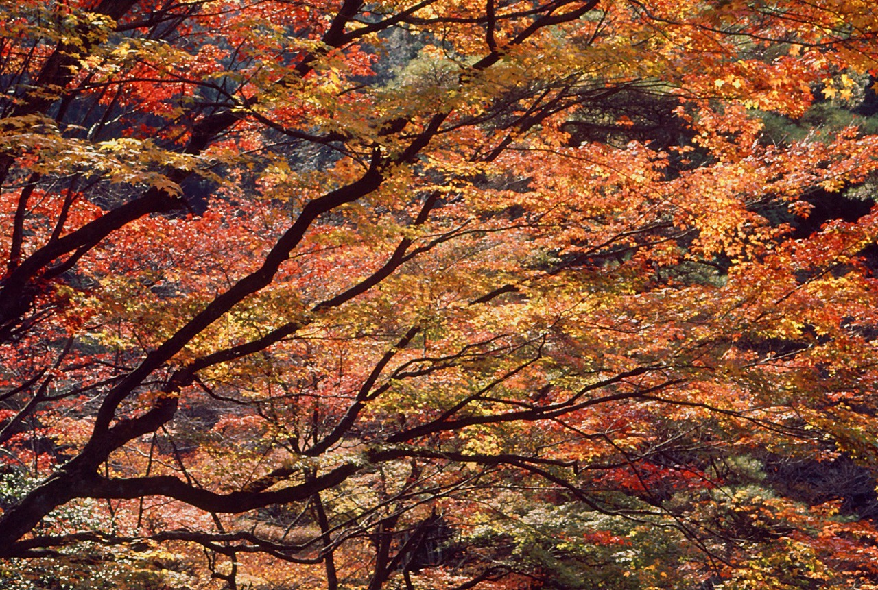 ↓ 京都の紅葉 学生時代初めての一眼レフ、アサヒペンタックスSPで撮影。それに比べると所有機器はずいぶん進化したがこんな写真を撮ることはもう不可能な気がする。幼稚園のころまで住んでいた九条山(蹴上。今ではVilla 九条山という日仏関連の建物が山頂付近にある)の紅葉。11月25日と記録あり