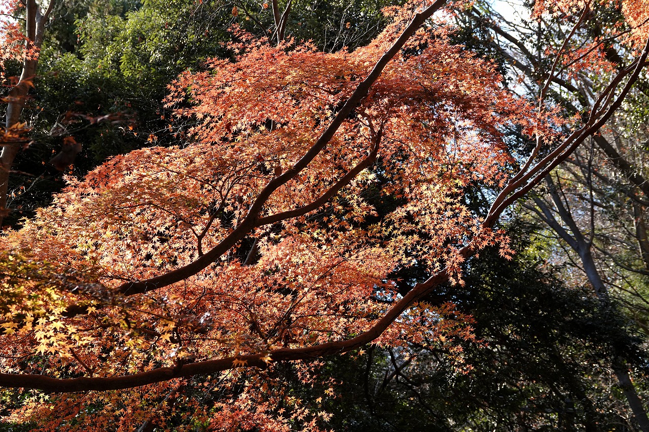 12月も中旬というのに、それも600メートル足らず(599メートル)とはいえ山なのに紅葉の真っ盛り。せっかくなので綺麗なのに越したことはないのだが、今更ながら気温の変化を思い知った。蝶は望むべくもないが、鳥も姿を確認できたのは山頂のヒヨドリ1羽のみだった。