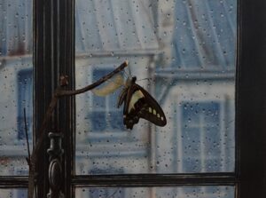 ↓ テリトリーのパトロールの甲斐あって入ってきたメスとの交尾飛翔