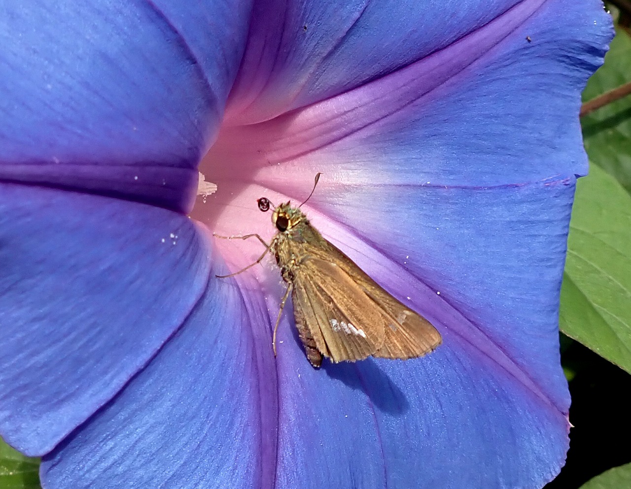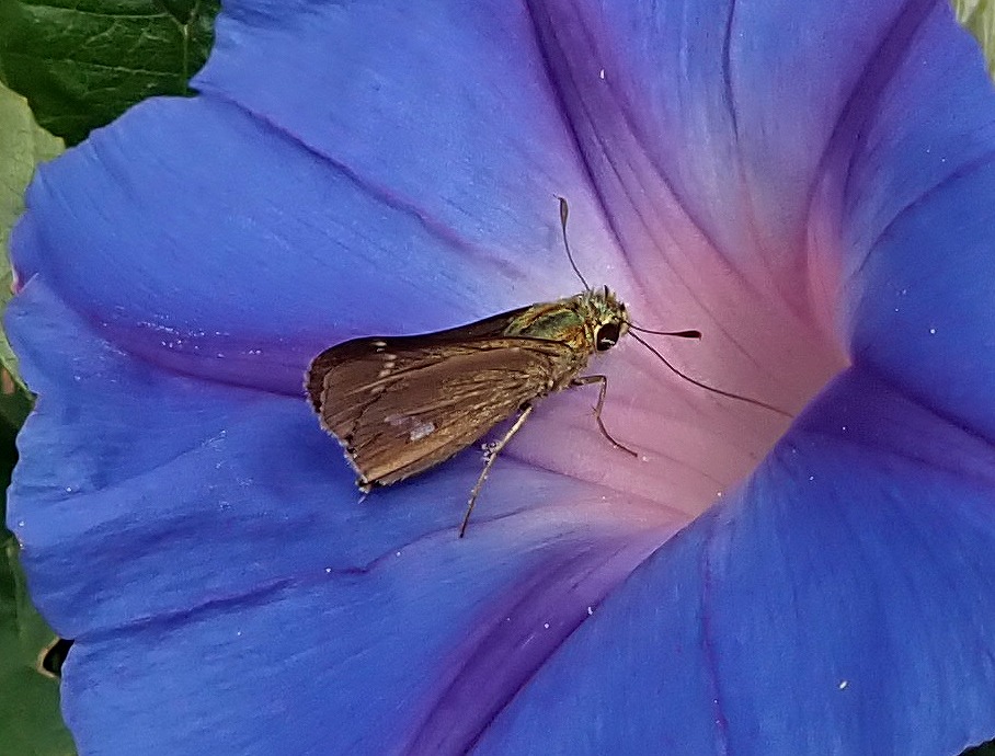 ↓ 好き嫌いなし、ノアサガオで吸蜜。随分ゼンマイが伸びる (アーカイブ 2011年11月14日 多摩川久地 )