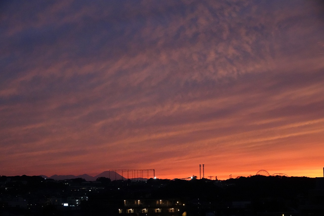 ↓ 上記と関係ないがバルコニーからの夕焼けがきれいだったので。富士、よみうりランドを望む