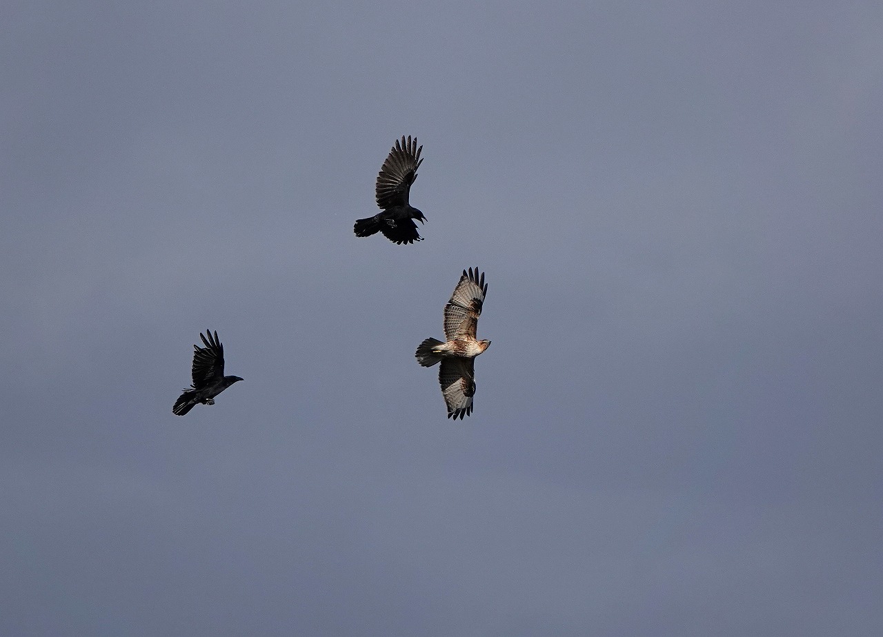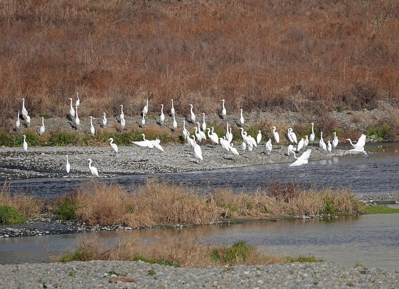 だいたい、「河岸を変える」と言えるのかな? と訝しげな思いを抱いたまま、分倍河原で乗り換え京王線で特急一駅の聖蹟桜ヶ丘に赴いた。自宅は多摩川右岸の中流域だし、行った先も同様。このところ日本語も難しいという感覚に陥りだした、外国語なんかやる余裕というか資格あるの? 閑話休題、昨年行った限りでは、かつて野鳥のパラダイスとの名声を得ていた同地もそんなイメージとは程遠く延々と続く、治水事業という名の護岸工事で自然環境は何もかもほぼ破壊され、鳥は殆どいなかったのでにがっかりした記憶しかない。土手のサイクリングロードを下ってゆくと、上空にこれはどうやら猛禽ノスリ、あらら・・・カラス2羽に追いかけられいじめられている。カラスはタイマンでなく徒党を組んで上空で猛禽を追尾しているのを時折見かける。もう少し大きくなったら小憎らしいカラスを逆に追尾してほしいものだ。