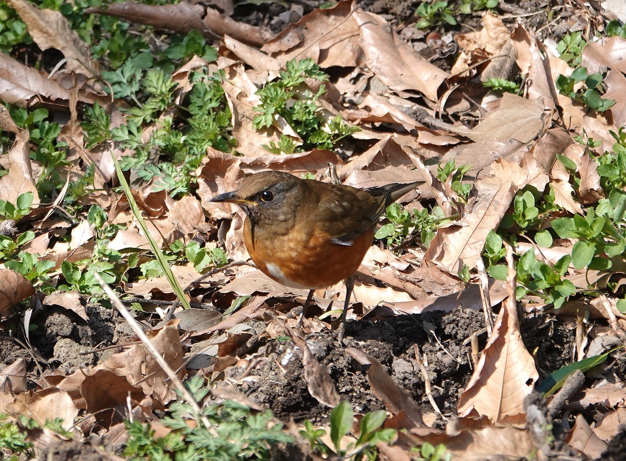 市内の森林公園や緑地で撮影したことはあったものの、裏の多摩川土手では初めてシロハラ(ひょっとすると紛らわしいアカハラかとは思ったがどうやらシロハラでよさそう)を見つけた。ツグミの仲間。