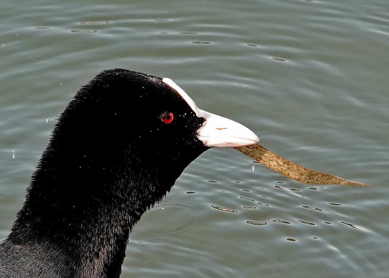 ↓ オオバン。遠くからはてっきりエビを食べてると思ったら、水草だった