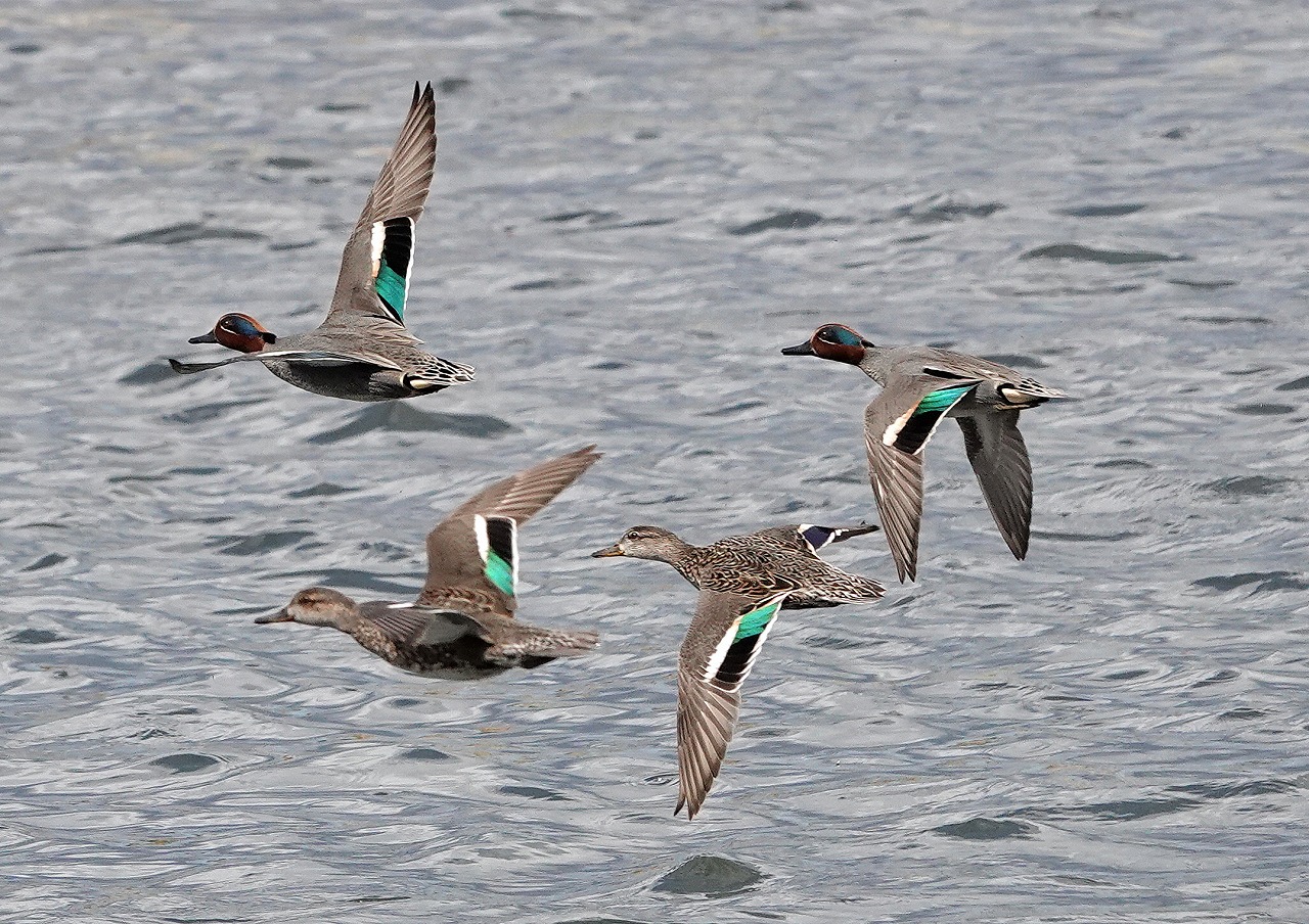 多摩川のコガモ、個体数は最も多く親しみやすいカモですがこの緑色の美しさには痺れます。