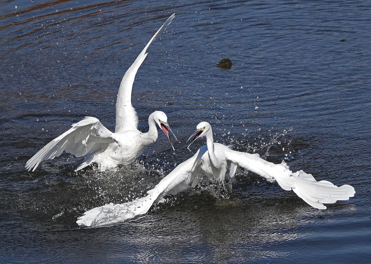 ↓ 過去のけんか。 まずはコサギ 原因不明のジュラシックパークを彷彿とさせる激しい戦い (アーカイブ 2023年12月3日 多摩川上河原堰)