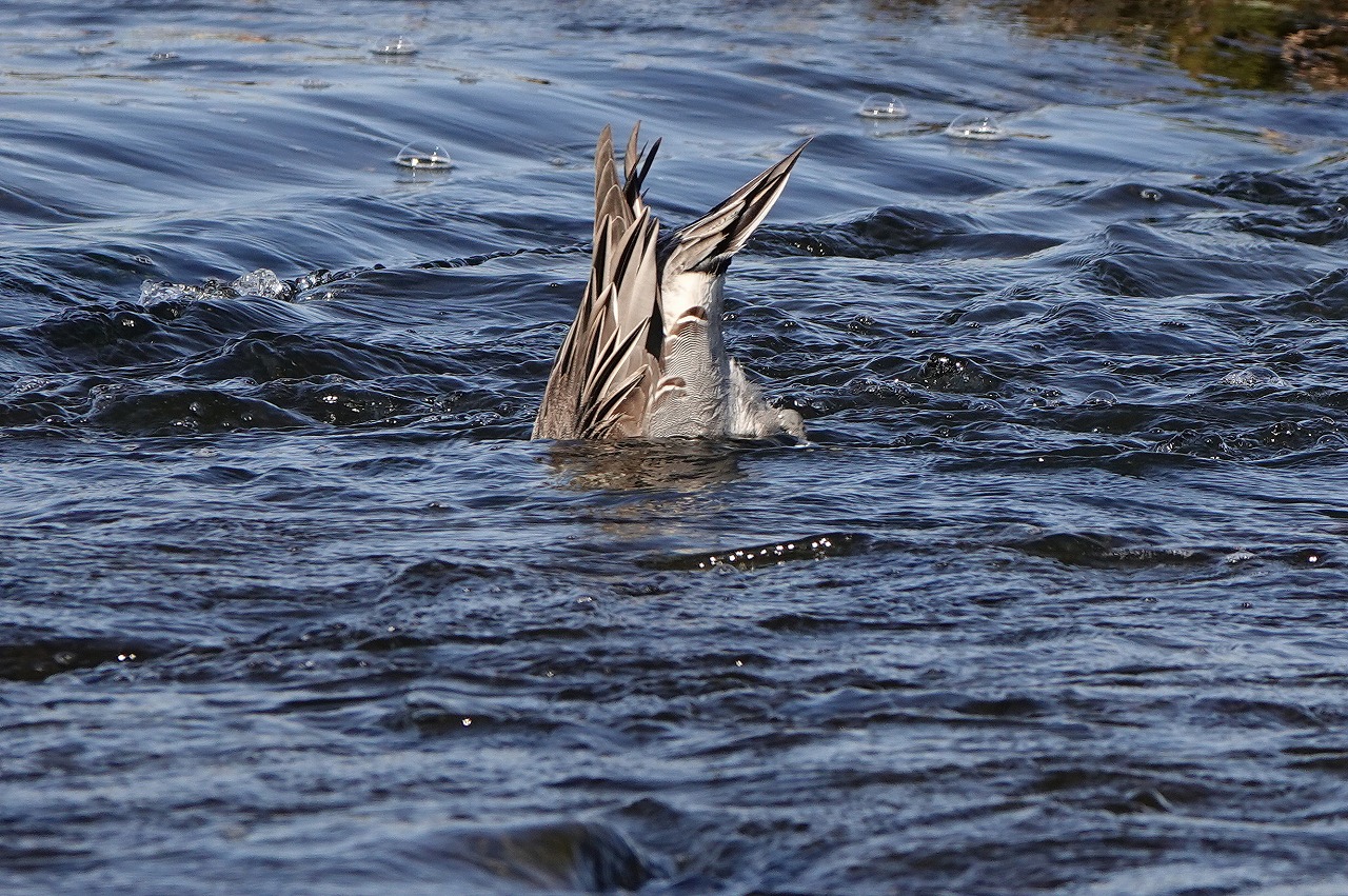 ↓ 採食は逆立ちスタイル。最近登場したホオジロガモのように潜水はしない。