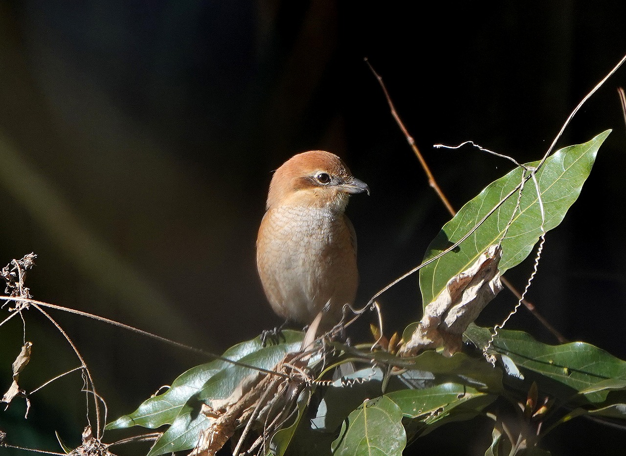 ↓ ついでに、モズ。こいつも「モズの早贄(はやにえ)」で知られるように、捕らえたトカゲやカエルを木のトゲや有刺鉄線などに刺して保存食として後日に備えるというヤマガラと同様に記憶力の良さを誇っている。たまたま似た習性の鳥を同じ日に観察することができた